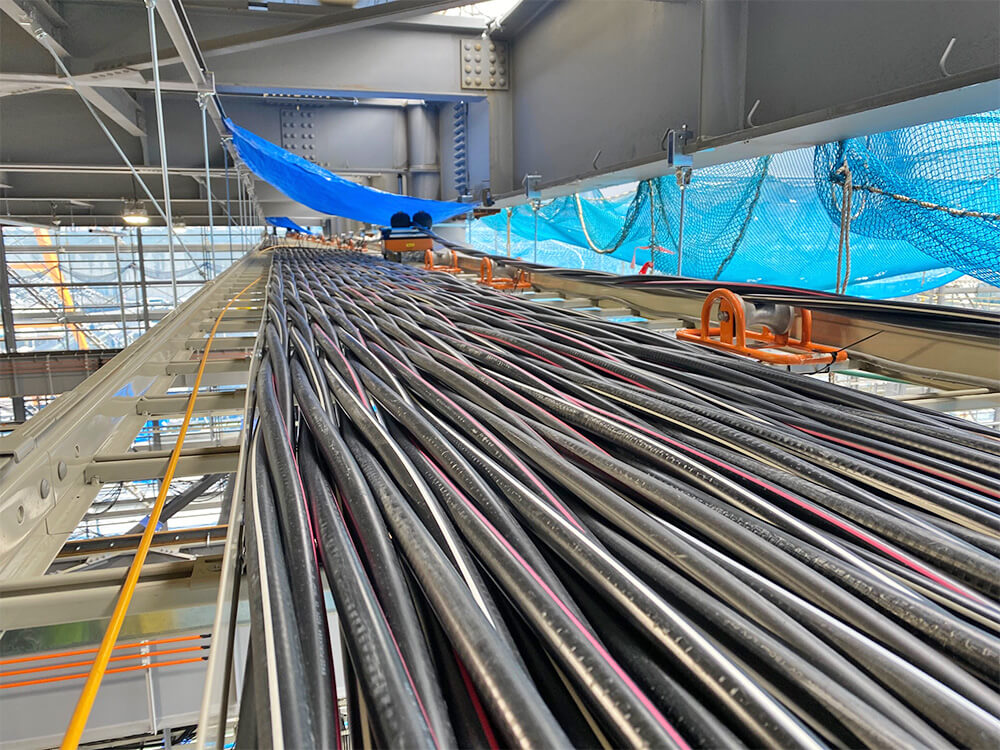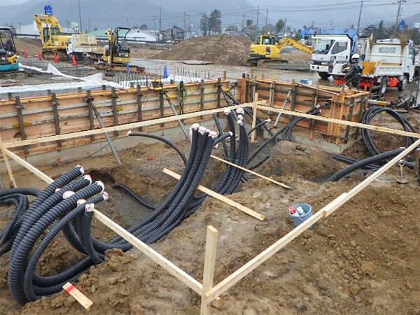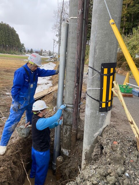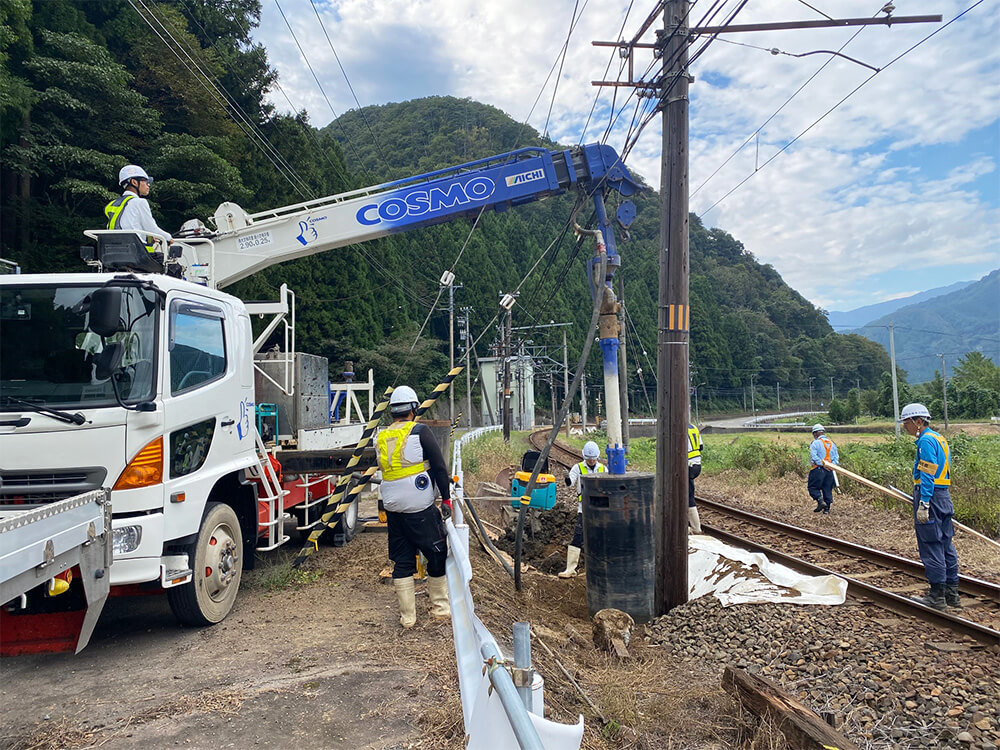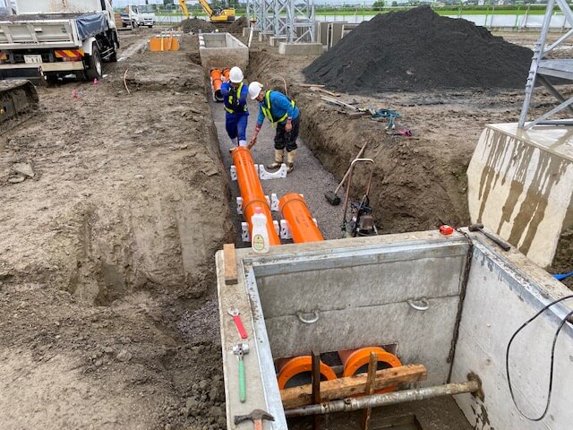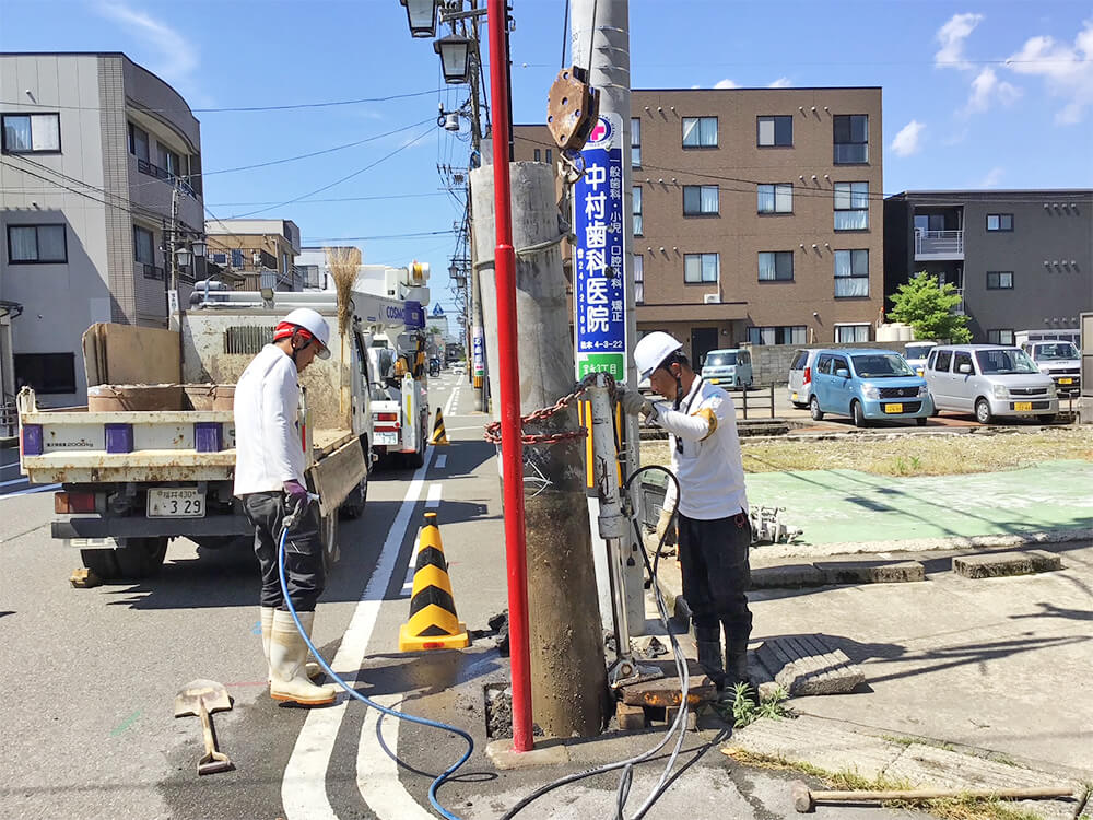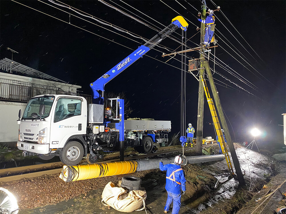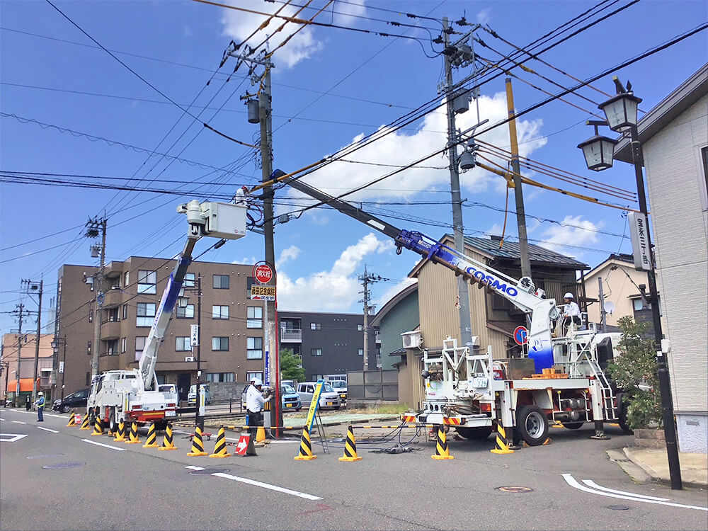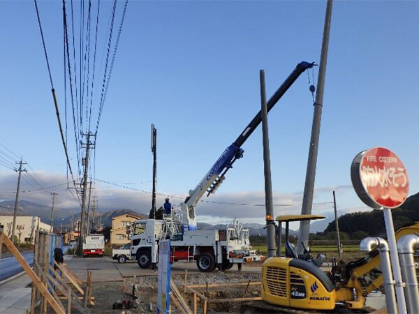 WORKS 01内線工事 受変電設備工事 受電柱建柱状況 柱上開閉器取付状況 キュービクル式高圧受電設備 埋設配管状況 キュービクル据付状況 幹線設備工事 パワーボール設置状況 屋外にてケーブル延線状況 ケーブル延線状況 ケーブル延線状況 電気土木工事 ハンドホール布設状況 グランドネットフェンス用20m柱継柱建柱状況 基礎杭800φ 杭頭処理 基礎杭内削孔状況 WORKS 02配電線工事 コンクリート柱建柱・抜柱工事 コンクリート柱抜柱状況 コンクリート柱切断状況 コンクリート柱切断状況 接地工事 接地線埋設状況 避雷針設置状況 接地棒打ち込み状況 接地線圧縮状況 伐採工事 高所作業車を使用しての枝打ち状況 高圧電線接触ヶ所 伐採状況 WORKS 03外線工事 電気土木工事 特別高圧管路配管状況 PFP管250φ配管状況 地中送電線路工事 深夜作業 配電用路上機器架台基礎設置状況 インターロック施工完了 配電線用管路取替状況 鉄道工事 無線通信工事 24m柱継柱 1接目 25tラフタークレーン建柱 3接目建柱 24mスカイマスター使用 17m柱継柱 垂直状況確認 24m柱継柱 搬入状況 アンテナ金具取付状況